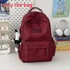 This casual backpack features a lightweight nylon construction , accented with letter prints and color-blocked details, suits students and travelers alike. Designed with ergonomic curved shoulder straps, it provides comfortable load distribution. Wipe clean with a damp cloth for maintenance.