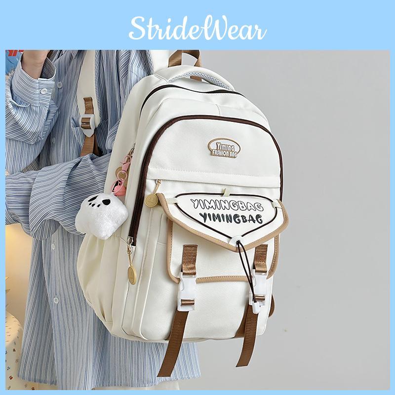 Blocked Color Cute Letter Printed Student Leisure Backpack With Pendant Plush