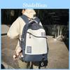 This backpack features a vibrant, retro-inspired design with color-block accents, crafted from durable nylon material. It offers a spacious capacity of 20-35 liters, supports 14-inch laptops, and incorporates breathable mesh straps for comfort. Perfect for school, travel, or daily use, its easy to maintain by wiping clean with a damp cloth.