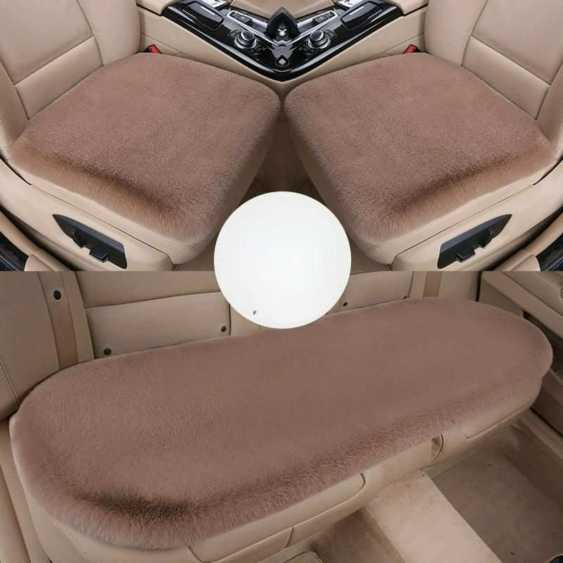 Coussin de siège auto trois pièces en fourrure de lapin d'hiver, coussin de siège auto en fausse fourrure sans dossier, coussin unique