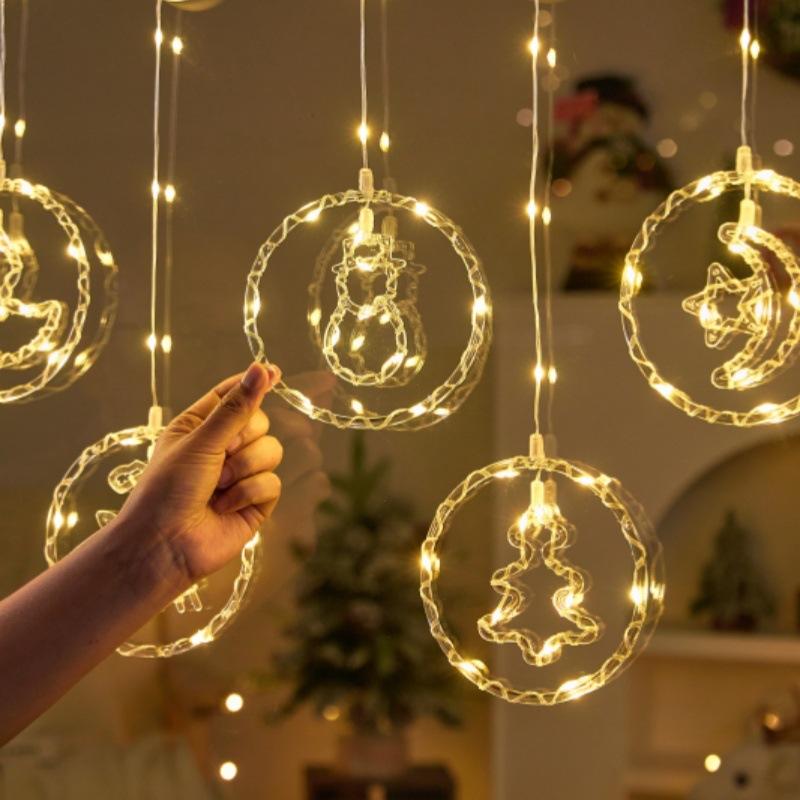 LED Christmas Decorative Lights Hanging Lights Window Holiday Decoration Ambience Remote Control Battery Box Circular String Lights