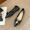 W828-90 Magnifiques sandales vides à nœud latéral en cuir verni pour femmes 2025 nouvelles chaussures sexy pointues qui ne fatiguent pas les pieds