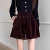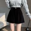 Shorts A-line en velours noir pour femmes, taille élastique, Automne précoce 2024, Coupe ample, Tissu épais.