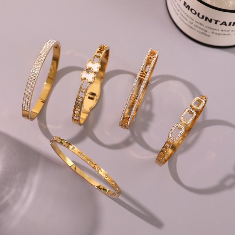 Bracelet Simple en Acier Inoxydable pour Femmes Style Coréen avec Fermoir en Titane Creux Incrusté de Diamants