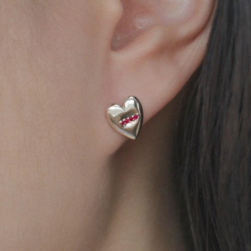 POSTLUDE [SILVER] HEART CC 4 CZ EARRINGS (3 colors)