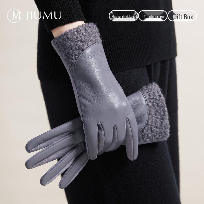 JIUMU Women's Winter Fleece-Lined PU Leather Touchscreen Gloves
