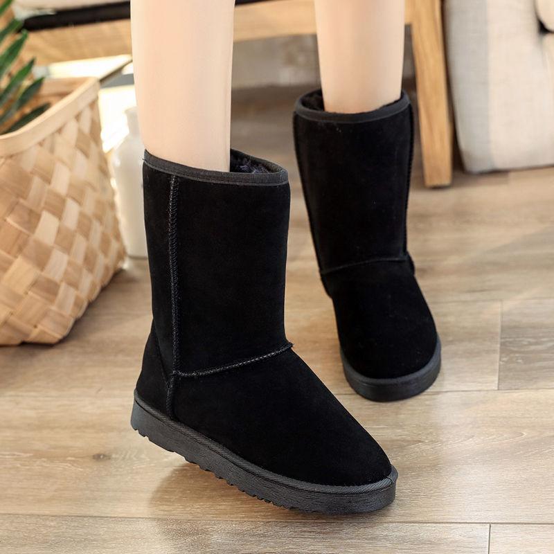 Grandes Tailles Bottes de Neige Chaudes d'Hiver pour Femmes Mi-Hautes à Bout Rond Plateforme Chaussures pour Dames Gothiques Confortables et Élégantes Bottes Rembourrées
