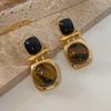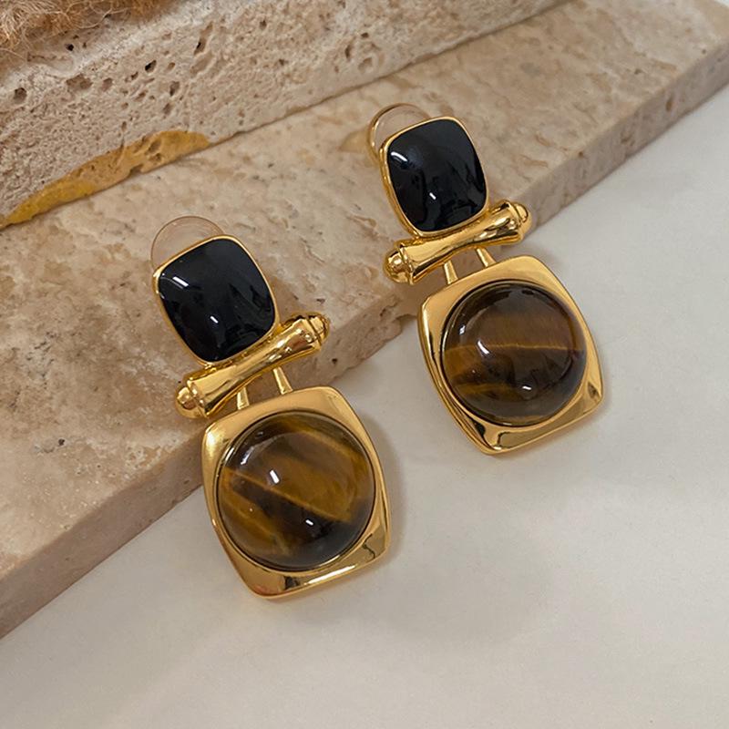 Boucles d'oreilles clous géométriques carrées style Hong Kong 2023 œil de tigre français et agate noire