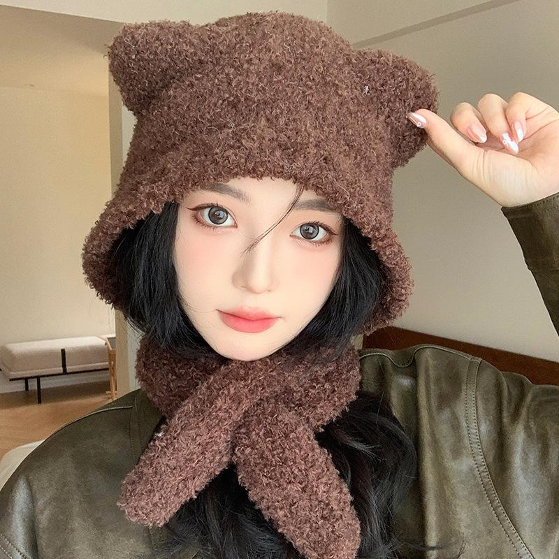New Cute Bear Hat for Women in Autumn and Winter Versatile Warm Woolen Hat Outdoor Cold Proof Ear Protection Knitted Hat