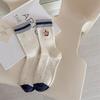 Jolis foulards d'automne brodés, chaussettes pour filles petit ours, chaussettes mi-mollet pour femmes micro-pressées en fil à pois, chaussettes bouclettes cartoon à blocs de couleurs