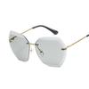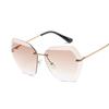 Lunettes de soleil vintage pour femme homme marque rectangle sans monture lunettes de soleil femme rétro monture en métal verres clairs verres roses