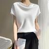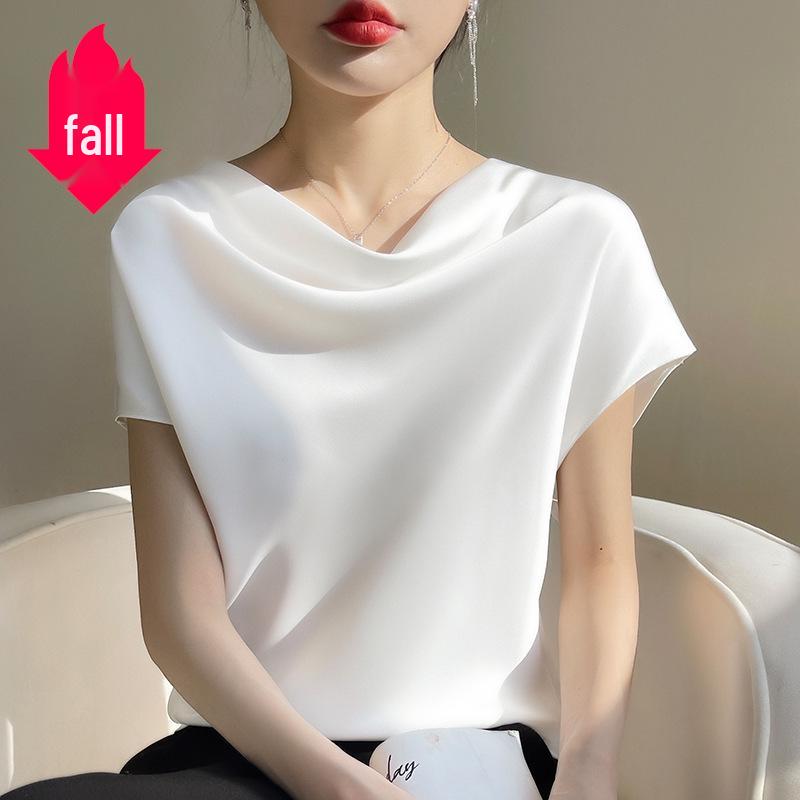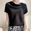 T-shirt à manches courtes et col français en satin de soie pour femme, printemps/été 2024, grande taille
