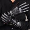 Windproof Winter Gloves Men PU Leather Button Warm Convertible Mittens Outdoor Sports Driving Skiing Black Cold Weather Gear