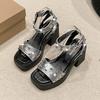 Talons épais montre tête carrée haute 2025 été nouveau sandales d'extérieur sandales à talons hauts polyvalentes à la mode européennes et américaines