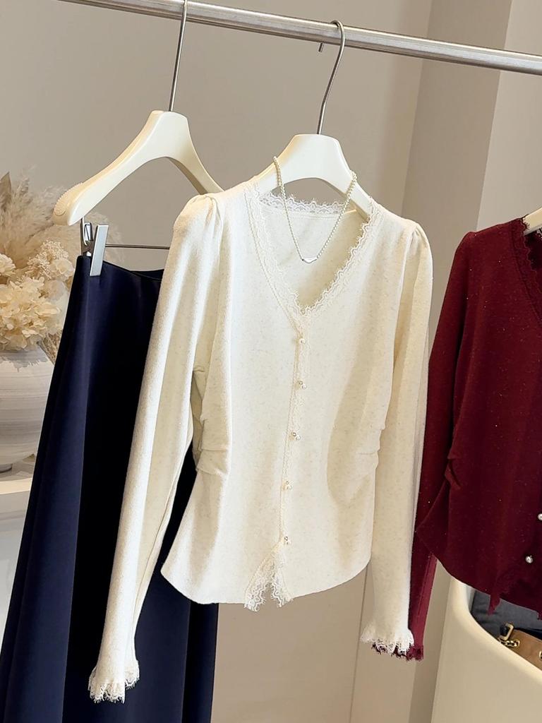 Pull-over pour femme à col en V avec patchwork de dentelle scintillante - Tricot polyvalent de couleur unie pour l'automne 2025