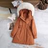 Manteau en coton Pai pour femmes, hiver, à capuche, épaissi, mi-longueur, coupe-froid, veste en coton à cordon de serrage à la taille, veste en coton duvet