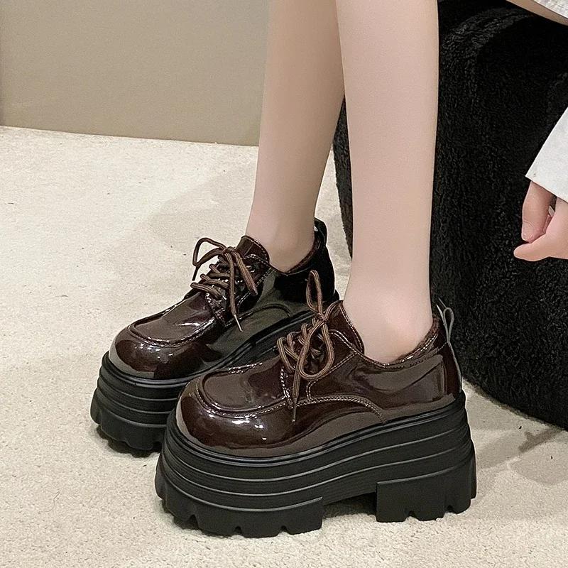 Mode 9CM Nouvelles Femmes Hiver Chaud Baskets Lacets Plateforme Haute Chaussures en Cuir Femme Gothique Bottines Cheville Rock Semelle Épaisse Chaussures Fourrure