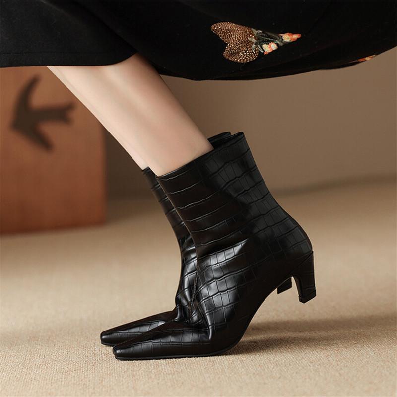 Mode Automne Hiver Cuir Fendu Bottes Femme Mode Bottes à Bout Carré pour Femmes Bottines Chaussures pour Dames Bottes Western Zapatos Mujer