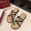 Ensemble d'orteils plats français pantoufles cool chaussures pour femmes été porter nouvel été semelle souple sandales demi-traînantes populaires
