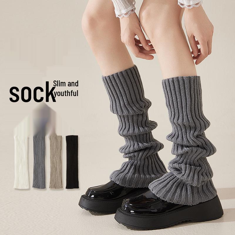 Gray Women's Slouchy Knit Leg Warmers, Spring & Autumn Style Long Socks, Y2K Calf Socks for Mary Jane Shoes.