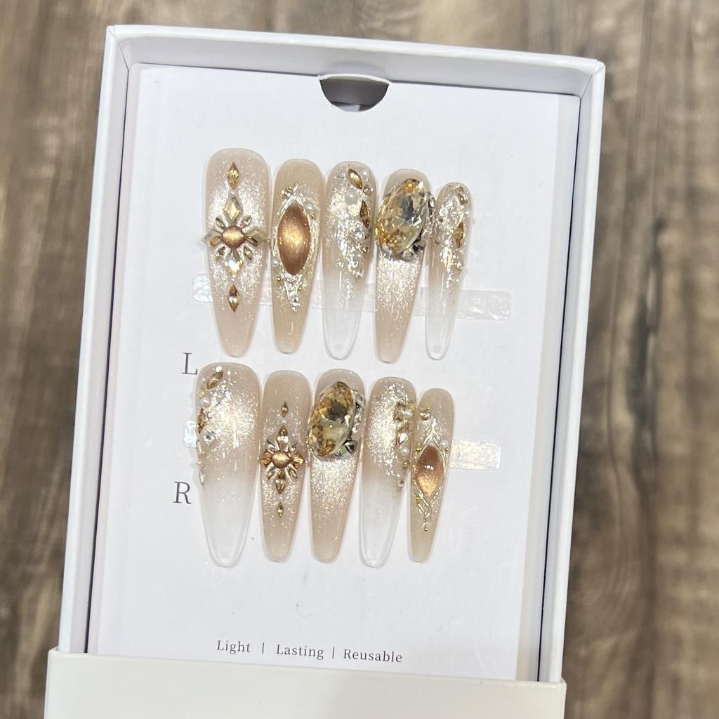 Dorisun Dieu Soleil Œil de Chat Champagne Perle en Verre Diamant K9 Fait Main Ongles Portables