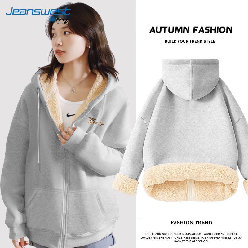 JEANSWEST Women's Thickened Lambswool Hooded Jacket