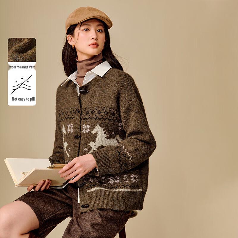 INMAN Women's Fair Isle Jacquard Cardigan Sweater