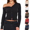 VEROMODA Women's 3/4 Sleeve Knit Top with Cut-Out Shoulders & Button Detail