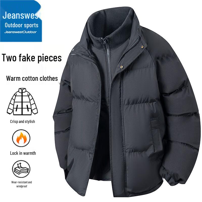 Jeanswest Men's Faux Two-Piece Stand Collar Padded Jacket