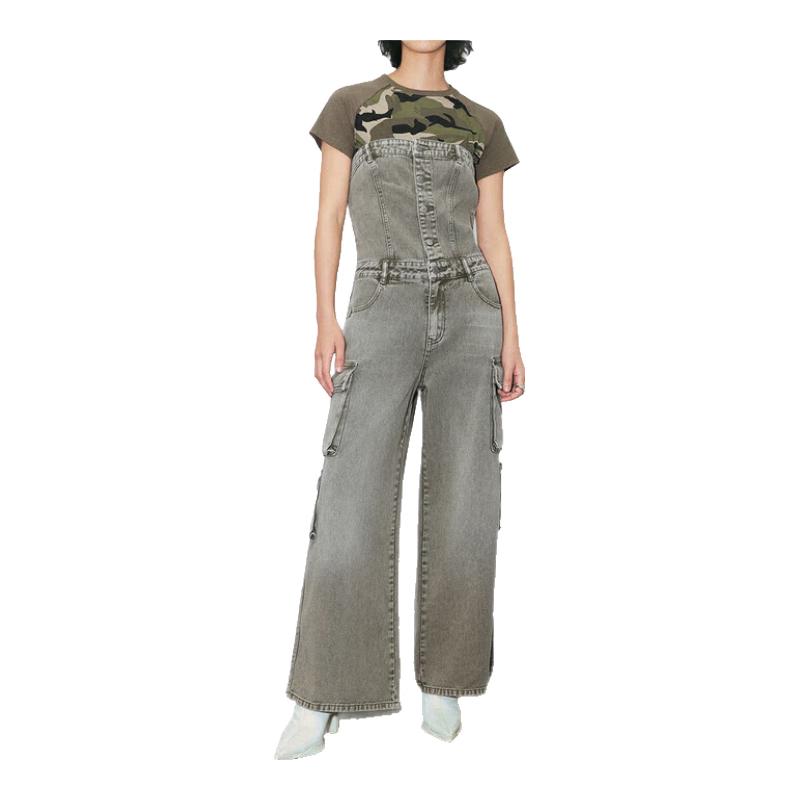 Combinaison Bandeau en Jean Délavé Usé pour Femmes UR