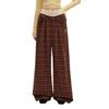 UNIFREE Retro Plaid Brushed Wide-Leg Casual Pants