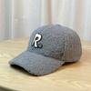 Hat Women's Large Head Circumference Autumn and Winter R Letter Lamb Wool Warm Baseball Cap Peaked Cap Outdoor Travel Leisure Versatile