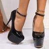 Célébrez Femmes Sexy Super Talons Hauts Boucle de Ceinture Escarpins Bout Rond Décolleté Cuir Verni Plateforme Talons de Boîte de Nuit Femmes