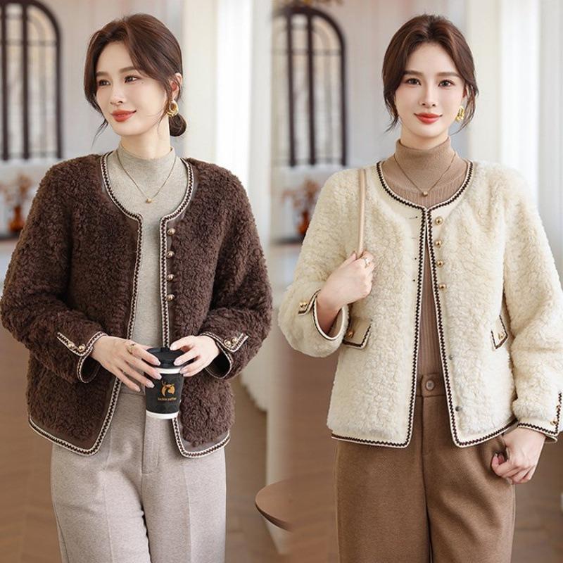 Women's fragrant jacket, warm fur integrated, slim and thin, medium women's short top