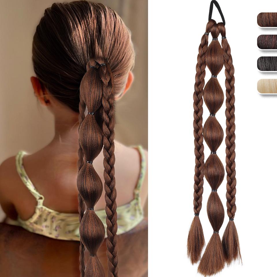 Queue de cheval synthétique à bulles Élastique Style Tresse Queue de cheval Extension de cheveux Perruque Convient aux Femmes Filles Port quotidien