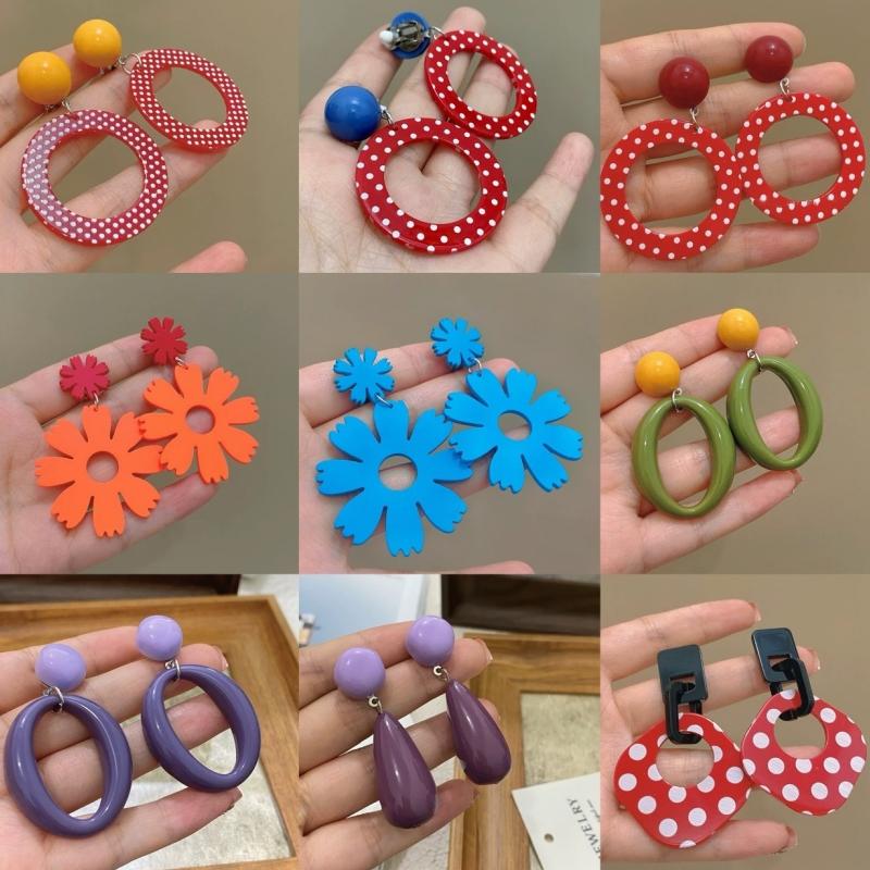 Adorables Boucles d'Oreilles Clips en Acrylique Fleur Pour Femmes Bohème Coréen Grand Géométrique Rond Carré Long Pendant Boucle d'Oreille Clip Bijoux