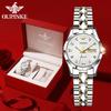 OUPINKE Montres en acier tungstène incrusté de diamants, montre mécanique automatique étanche pour femmes