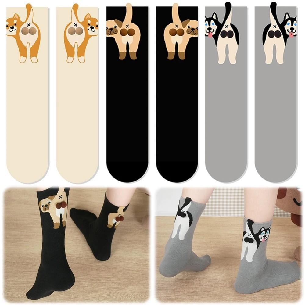 Chaussettes mi-mollet absorbant la transpiration Chaussettes pour couples Chat Œuf Chaussettes en coton confortables