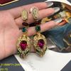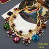 Heavy Industry Vintage Medieval Jewelry Color Cut Gemstone Short Necklace Earrings Light Luxury Elegant Versatile Set
