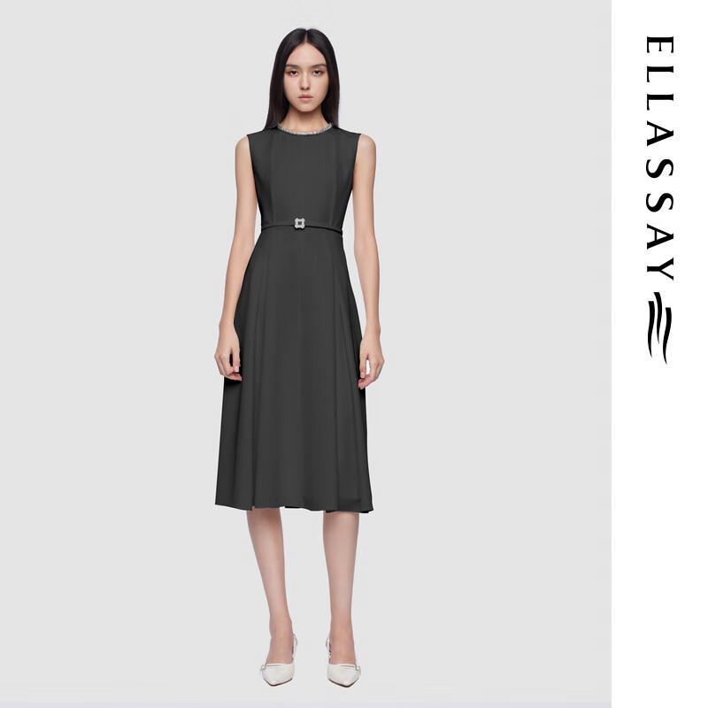 ELLASSAY 2025 Summer Rhinestone French Elegant Midi Dress