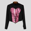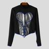 INCERUN Men Stand Neck Long Sleeve Bandage PU Patchwork Casual Cropped Tops T-shirts