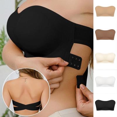 Soutien-gorge sans bretelles sexy de couleur unie pour femme, dos croisé, boucle latérale, sangle antidérapante, coussinet de poitrine, sans anneau en acier