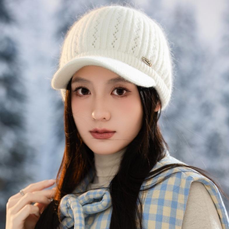 Chapeau d'automne et d'hiver pour femmes, bonnet tricoté épais en polaire, chapeau haut vide, chapeau de sport chaud de mode d'extérieur