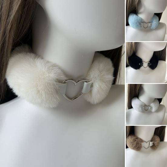 Collier choker moelleux détachable Collier duveteux Alliage Cœur Fausse fourrure Collier choker pour femmes