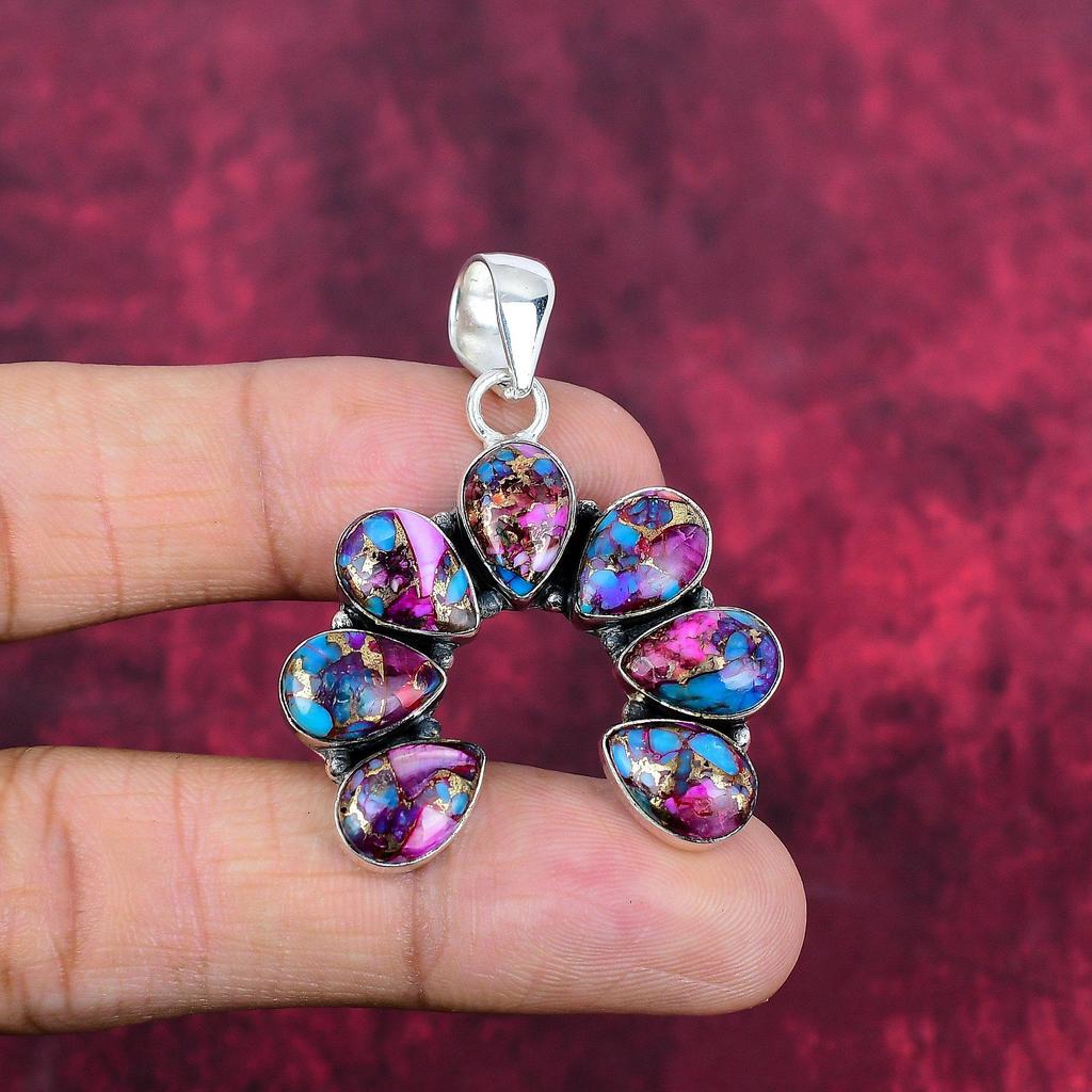 Pendentif Huître Épineuse Rose, Bijou en Pierre Précieuse en Argent Sterling Massif 925, Pendentif Fait Main, Pour Thanksgiving