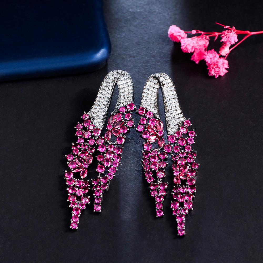 Robe de Dîner Élégante Tempérament Style Aiguille Avec Longues Boucles d'Oreilles Diamant Boucles d'Oreilles Zircon Atmosphériques Exagérées