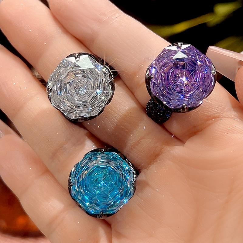 Bijoux Fond Cuivre Plaqué Or Imitation Taille Rose Couleur Trésor Couleur Luxe Léger Bague Or Noir Femme 16Mm