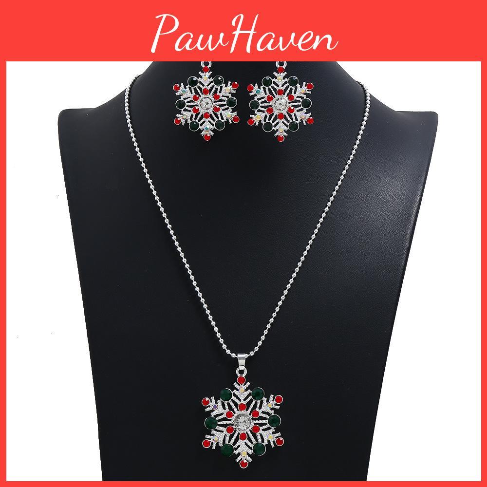 This contemporary snowflake set features rhinestone embellishments and an alloy chain, ideal for holiday celebrations and special occasions, offering versatile styling. Suitable for both men and women, the set includes a matching necklace and earrings. Perfect for gifting or personal use, it enhances festive outfits. To maintain its shine, wipe clean with a soft cloth.