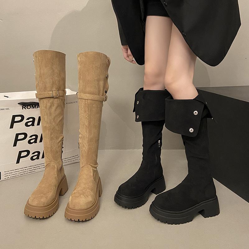 Bottes cuissardes pour femmes automne-hiver 2025 nouveau, les petites personnes gagnent en hauteur, et deux façons de porter des bottes Maillard pliées, bottes longues.