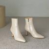Nouvelles bottes mi-mollet pour femmes en cuir grande taille couleur unie fermeture éclair arrière talon fin pointues automne et hiver confortables peau de mouton bottes Martin